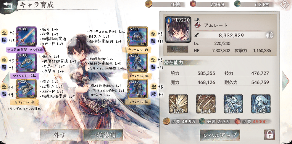 プリマの武器・防具強化するならマーリン優先か?と考え強化しました。