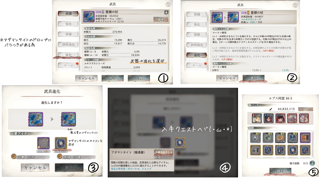 武器進化をするのに、パーツが貯まってもアダマンタイトで足止めを食らうのはなんか嫌っ!!