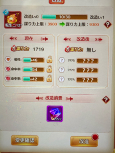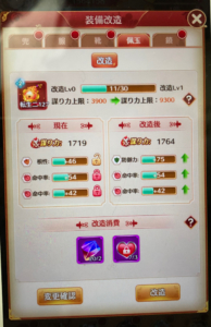 改造レベルが上がるにつれて、ステータスも上がってくるので装備がある程度そろっていて『改造どうしようかな?』と悩んでる人がいたら、やってもいいんじゃないかな?と思うのです。